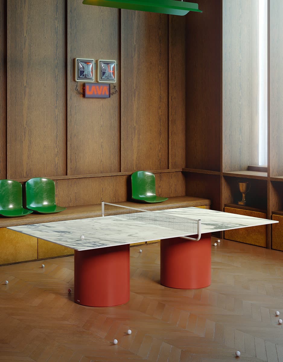 Lava is an Italian company specializing in the production of ping pong tables and furniture accessories, characterized by a bold yet elegant aesthetic.