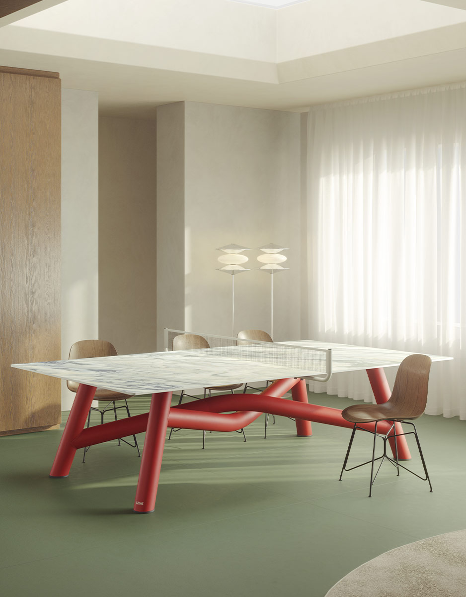 The hypnotic trail of the ping-pong ball bouncing from one side of the table to the other inspired Gae, a creation for Lava characterized by balance and delicacy, designed by Gio Tirotto.
