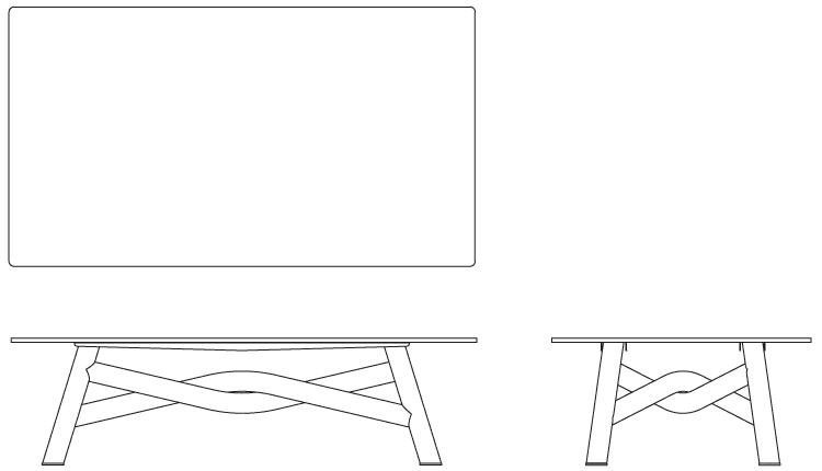 The table stands out for the sculptural structure of its legs, which brush against each other at the center in a sinuous and solid intertwining before merging with the tabletop.